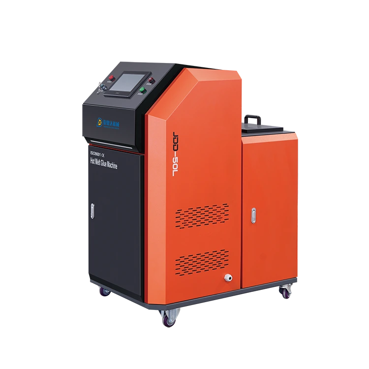 A. Die Halterung der Klebepistole verfügt über einen Auf- und Ab-Mechanismus, der leicht einzustellen ist.